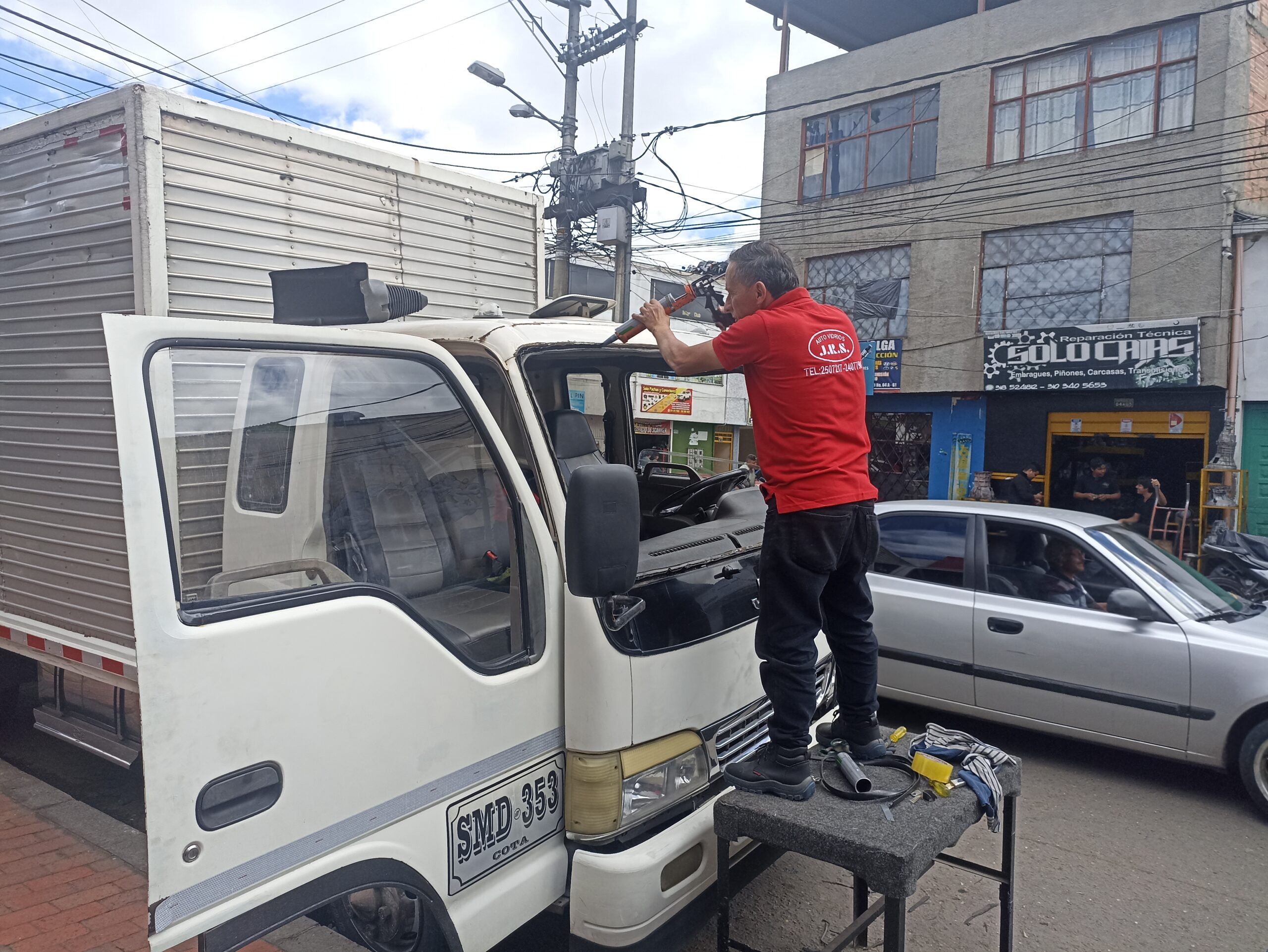 Reposición de vidrios de maquinaria pesada de construcción, camiones y volquetas
